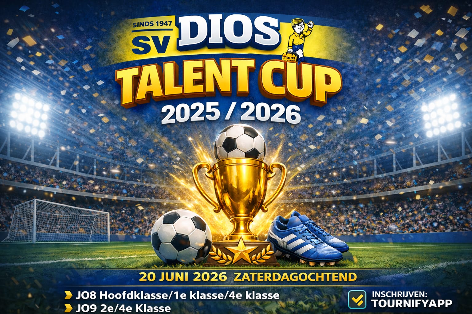 Op zaterdagochtend 20 juni 2026 organiseert SV DIOS de Talent Cup 2025/2026: een sportief en gezellig jeugdtoernooi waarin talent, plezier en ontwikkeling centraal staan.